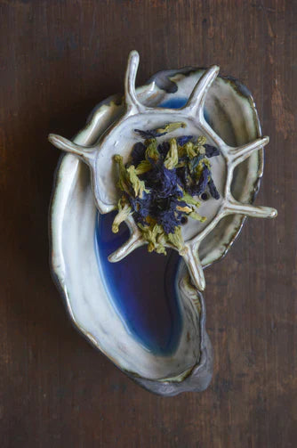 The Oceanology collection is inspired by the relationship between humans and nature. These naturalistic ceramic pieces were created in the image of the ocean. Shapes, textures and colors evoke shells, salt and sand. Each piece is hand crafted from natural clays by artisans in Yarnnakarn's Bangkok based studio.